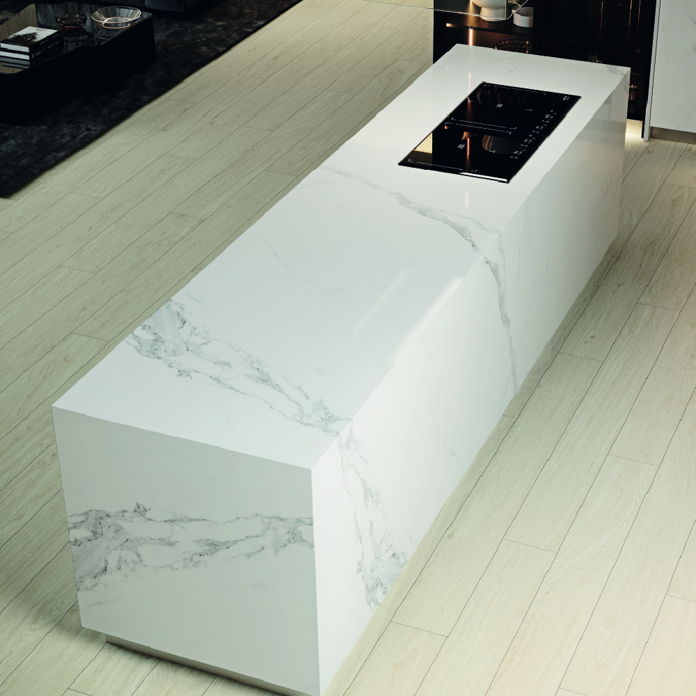 El resultado es un material que combina la estética de la piedra natural con tecnología avanzada, ofreciendo mayor durabilidad y mejor rendimiento en entornos exigentes como la cocina.