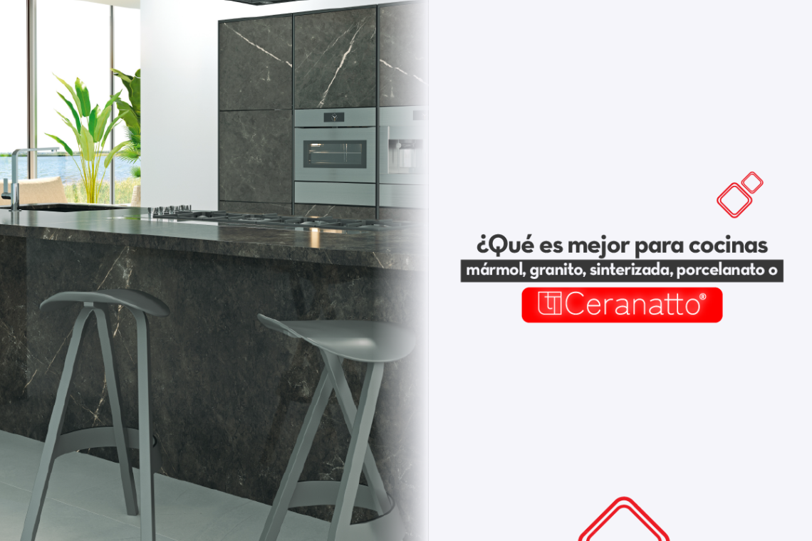 Los materiales naturales como mármol o granito siguen siendo opciones válidas para ciertos estilos. Sin embargo, en cocinas modernas donde se busca durabilidad, estética limpia y bajo mantenimiento, las superficies tecnológicas como piedra sinterizada y porcelánicos tipo Cerannato se están posicionando como las opciones más inteligentes.